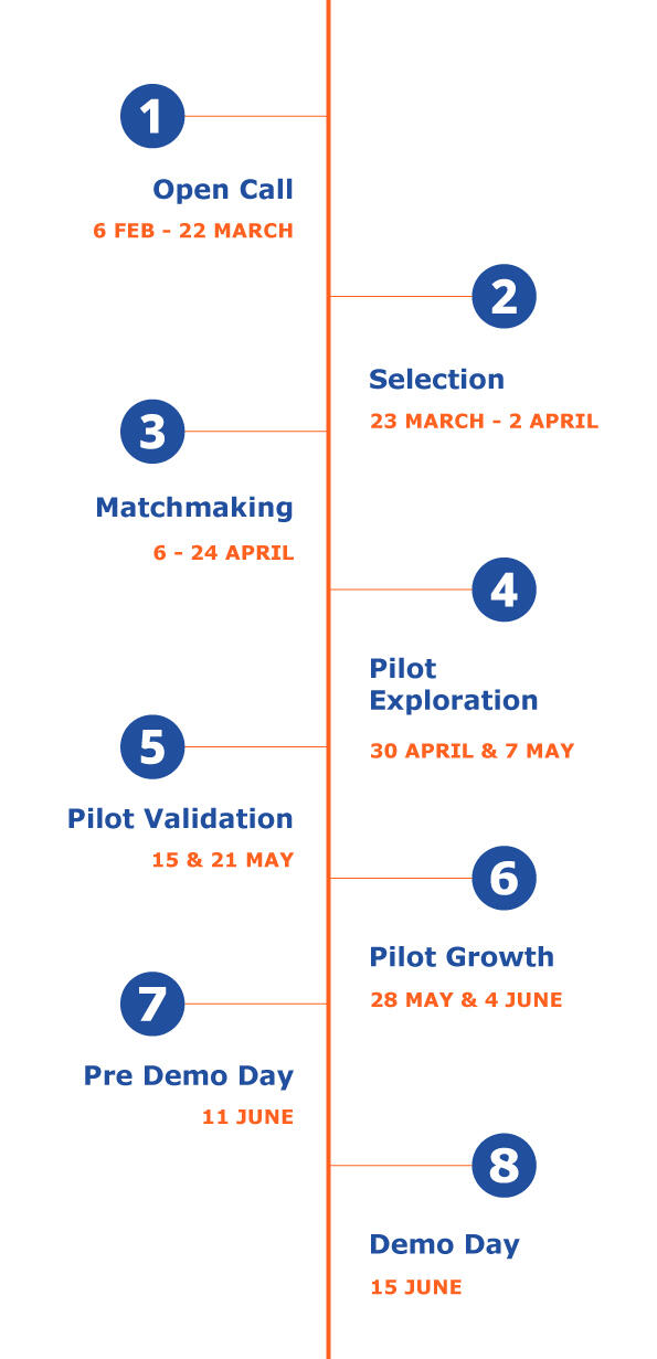 Depending on the challenge you applied for, infrastructure needs, and specific requirements, these perks may also be aligned with partner entities and Hub Azul. All needs arising from the startups (operational, data, infrastructure, service-related, etc) will be facilitated by the Hubs on a case-by-case basis.Participation in the program does not imply any financial compensation or guarantee of investment.